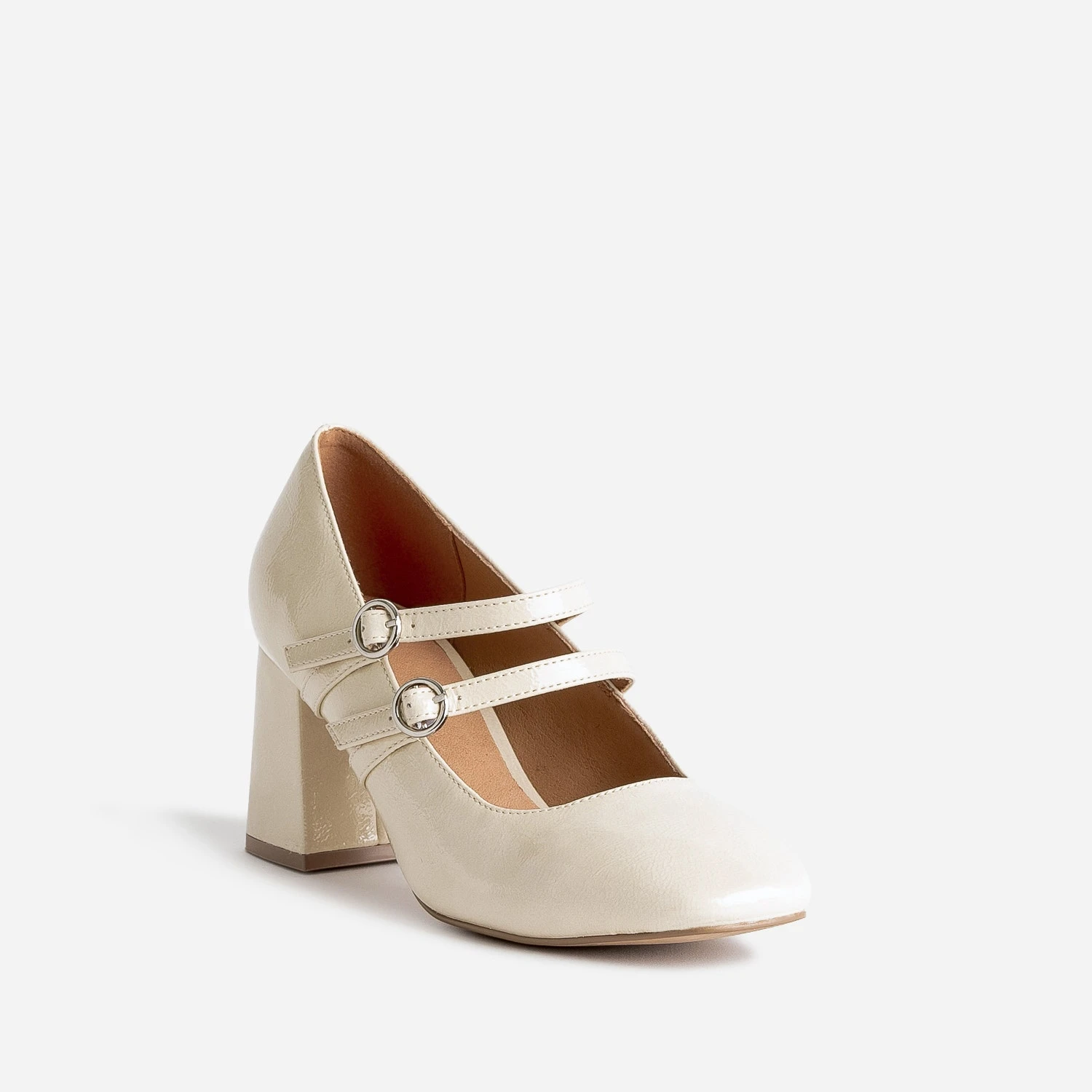 Tige en matière synthétique, première en cuir, cette babies pour femme est montée sur un talon de 6,5 cm. Beige et modernisée par un bout carré et une finition vernie, elle se démarque par 2 brides parallèles, qui participent au maintien du pied. Le style Collège a la côte ? Finalisez votre tenue par ce soulier à l’allure rétro à souhait !