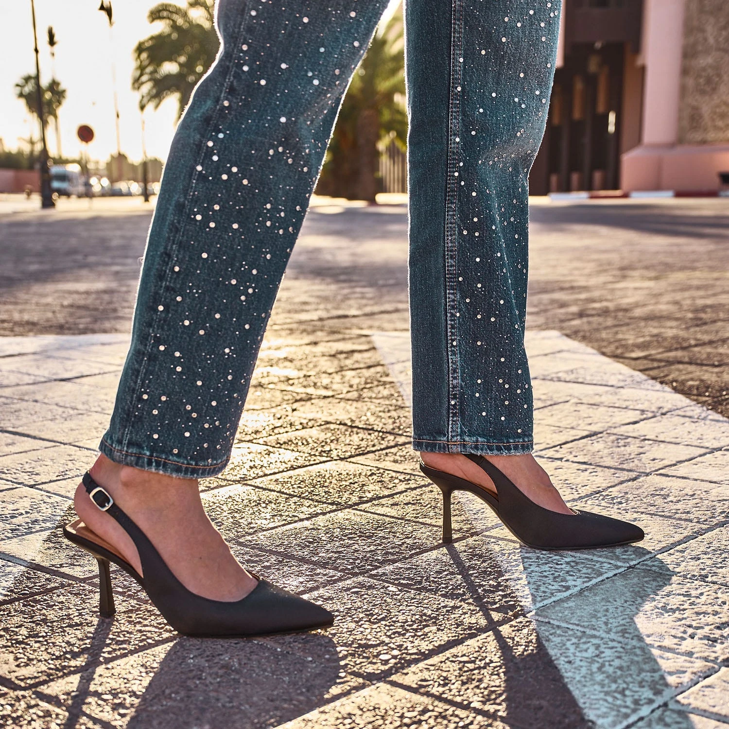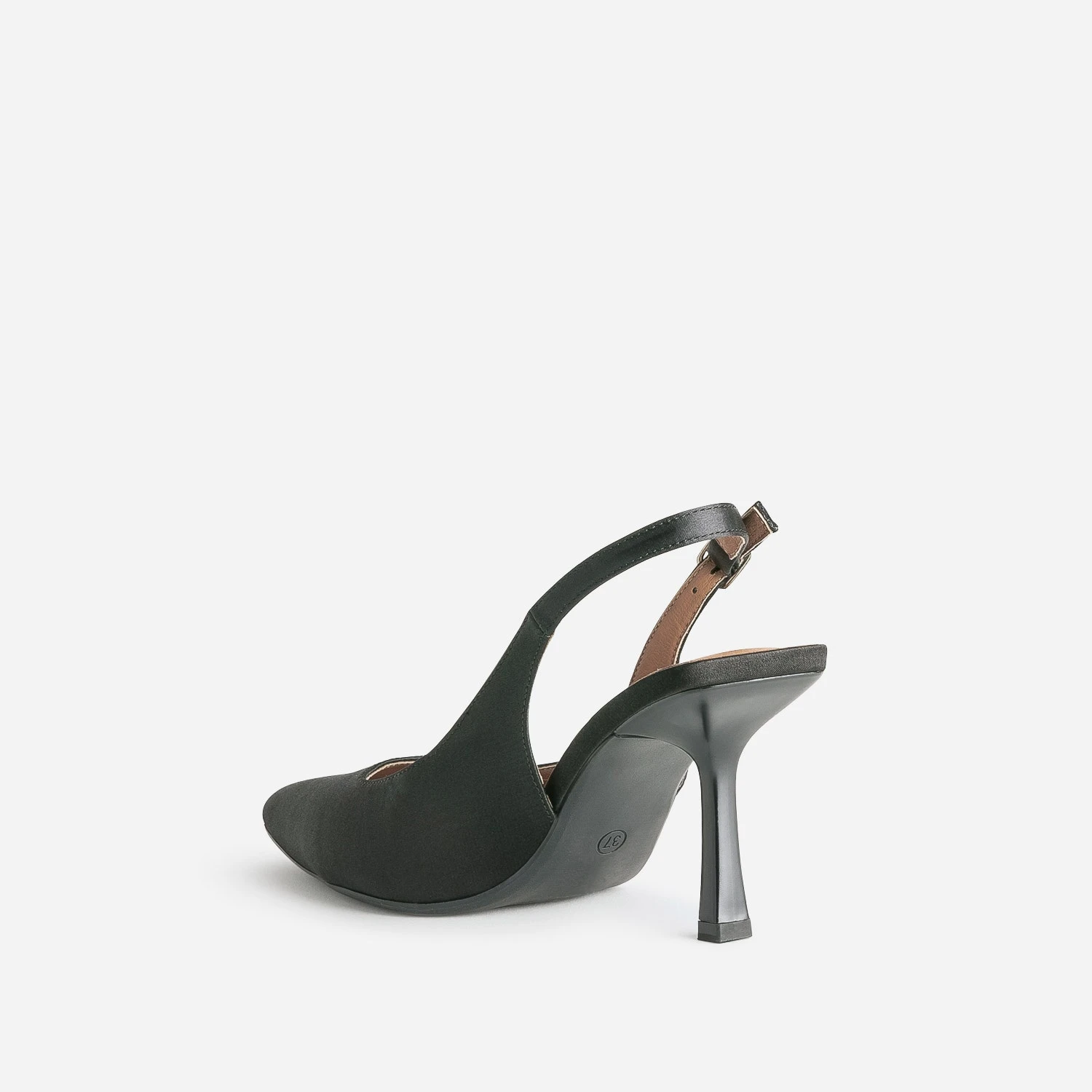 Cet escarpin est la définition même du glamour. Forme slingback, due à sa bride sur talon découvert, il est conçu en textile satiné dans un coloris noir intemporel. Bout pointu et talon fin de 8 cm, il élance la silhouette avec style et élégance. Privilégiez-le pour une cérémonie, avec une robe légère, unie ou imprimée, et une pochette assortie.