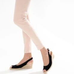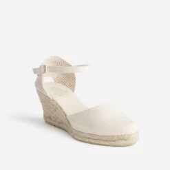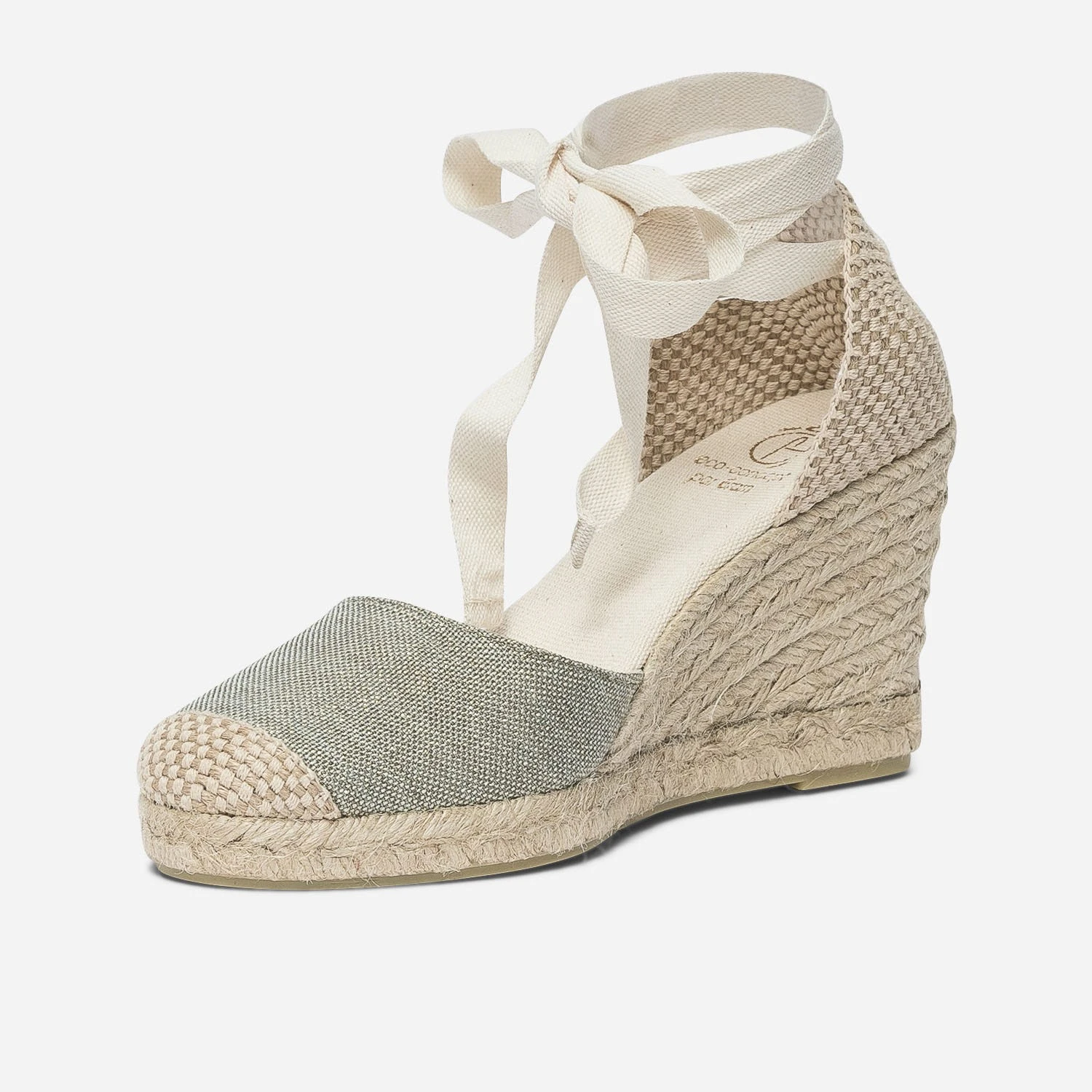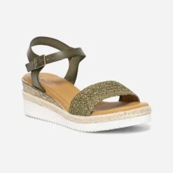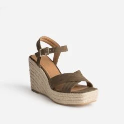 Espadrille Compensée Vert Sauge Pailleté En Toile
