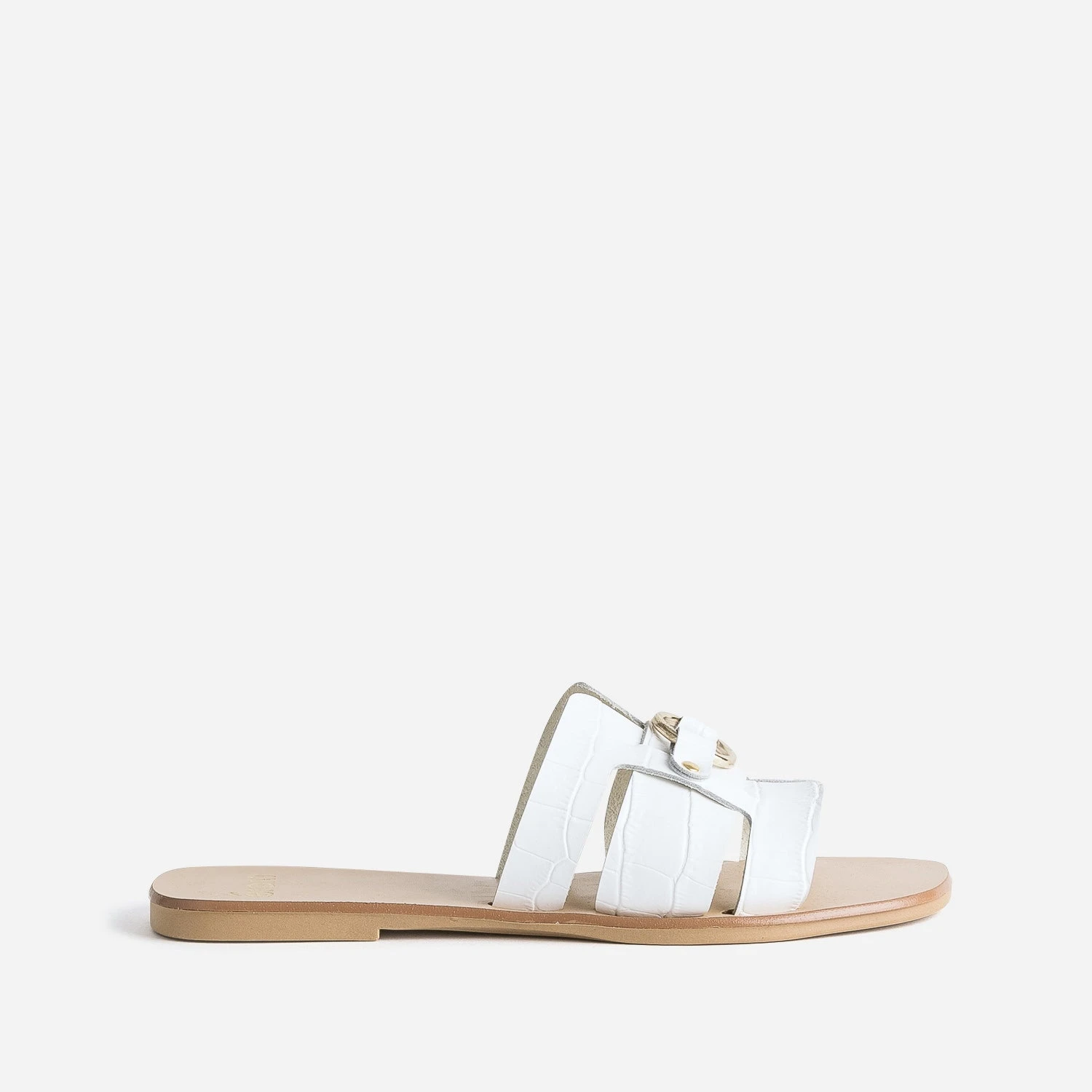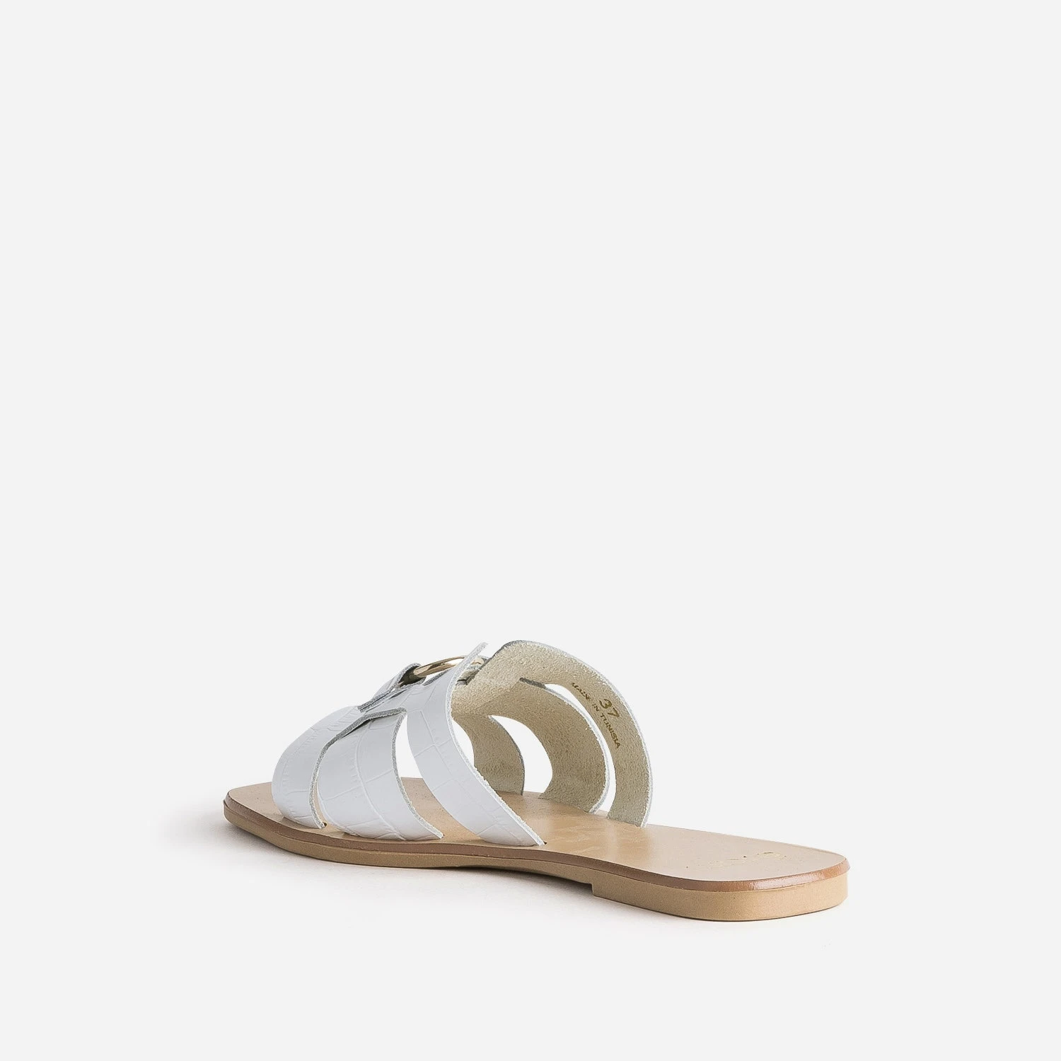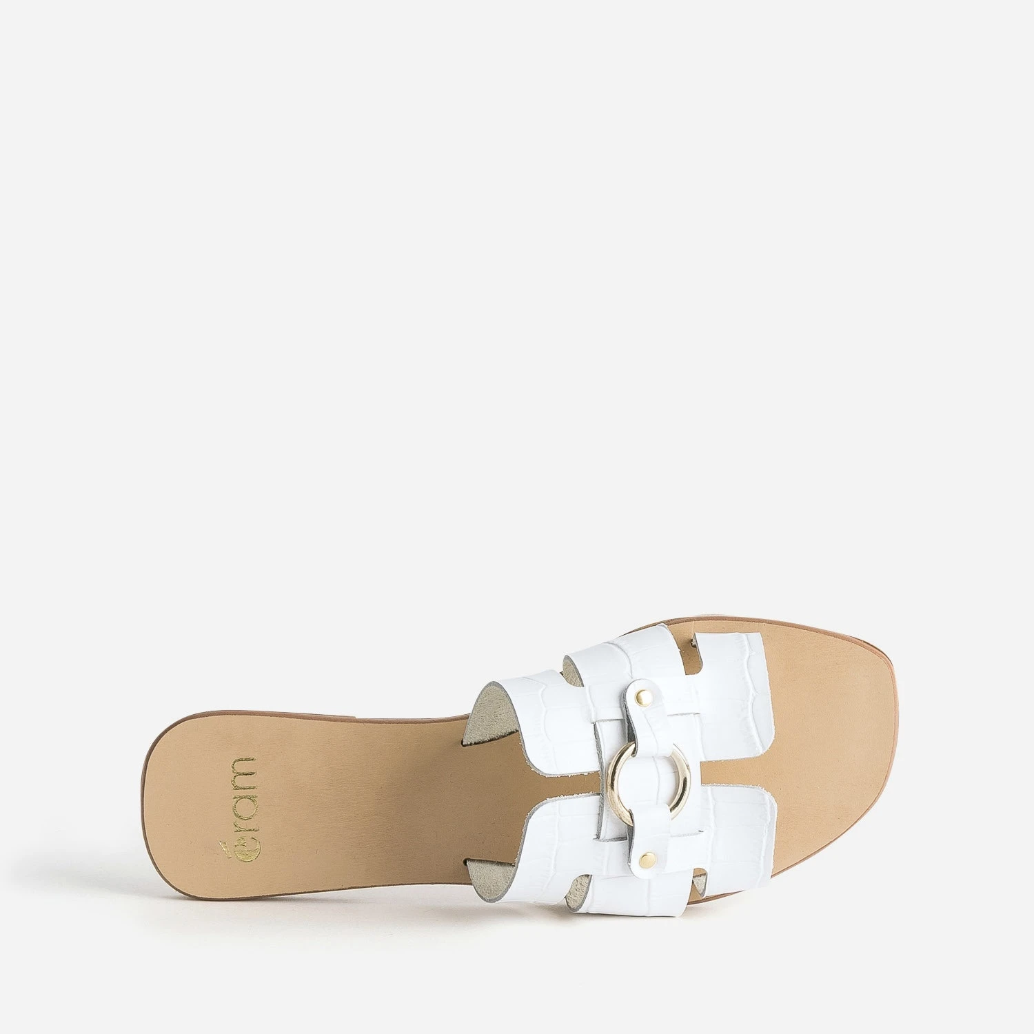 Avec sa large brique unique, cette mule assume un pouvoir mode irrésistible cette saison. En cuir blanc embossé croco, non doublé avec première synthétique, elle présente un anneau en métal doré sur le dessus. Un modèle si facile à porter, que vous ne pourrez plus vous en passer.
