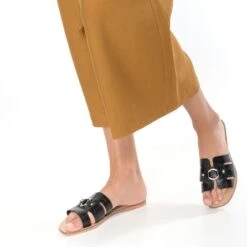 100% synthétique, la mule séduit de plus en plus d’adeptes. Plate, elle se démarque par un jeu d’entrelacs formant l’unique et large bride sur le dessus du pied. Noir, ce modèle idéal au quotidien, pour travailler comme pour sortir.