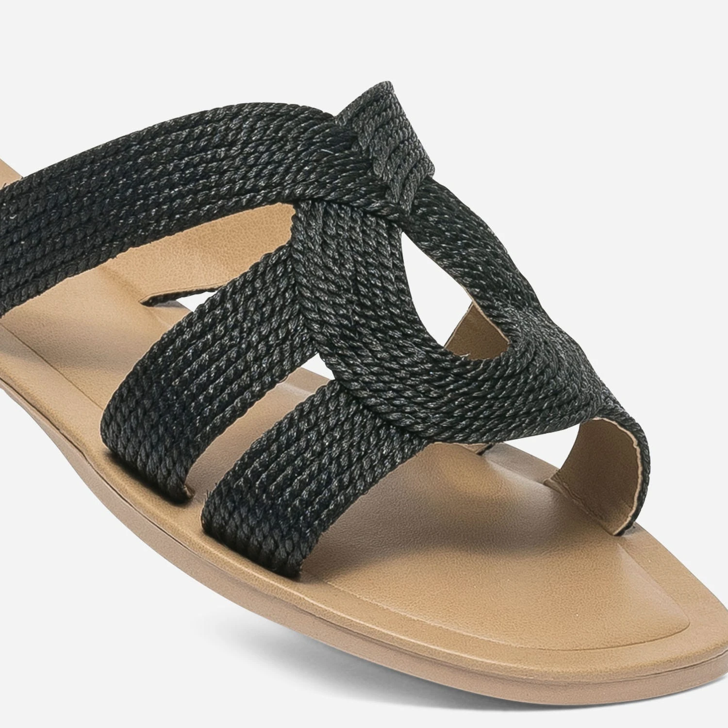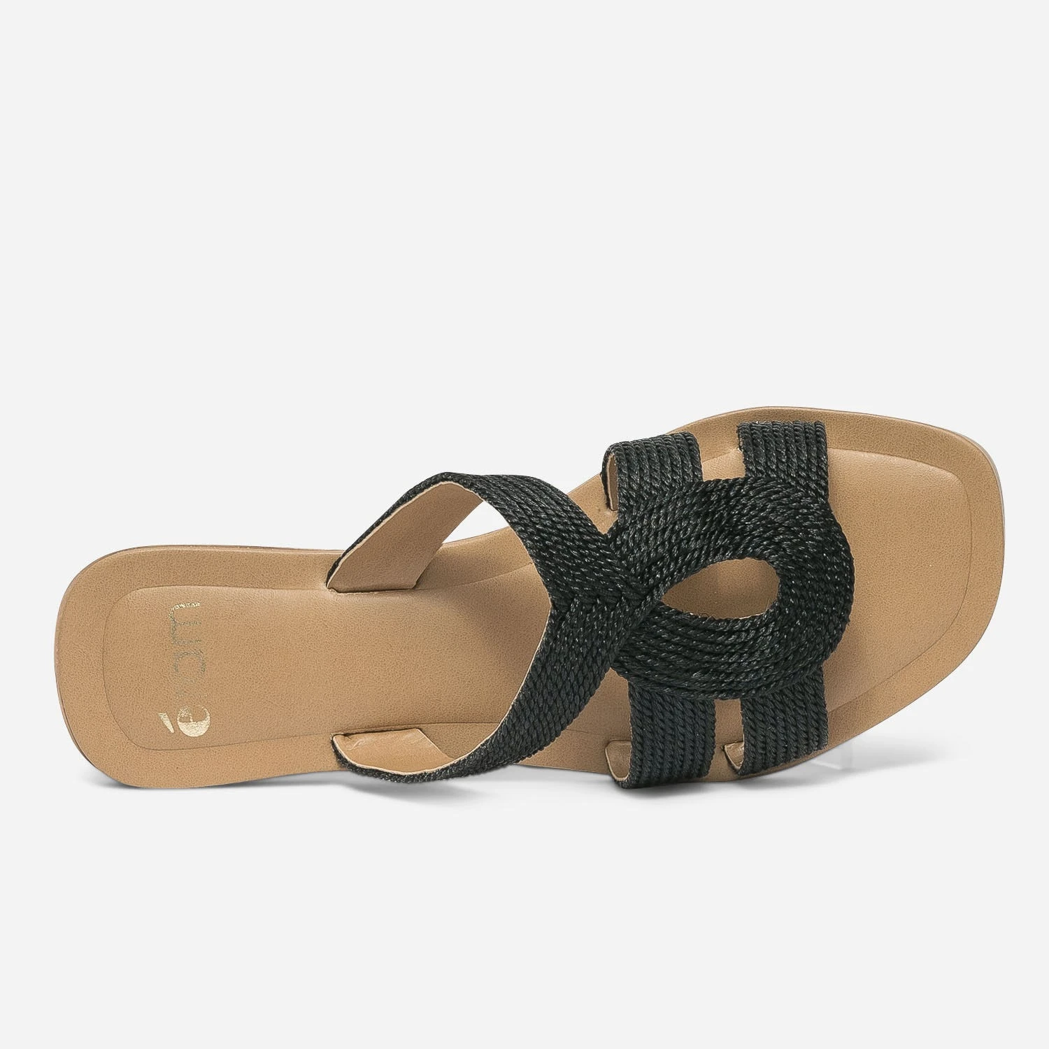 Sublimer le pied, le bronzage de l’été, les tenues légères et raffinées. Voilà la promesse de cette mule pour femme. En textile noir, elle présente 3 brides tressées, jointes par un bel entrelac sur le dessus. Un modèle facile à porter, avec toutes les couleurs de la palette estivale.