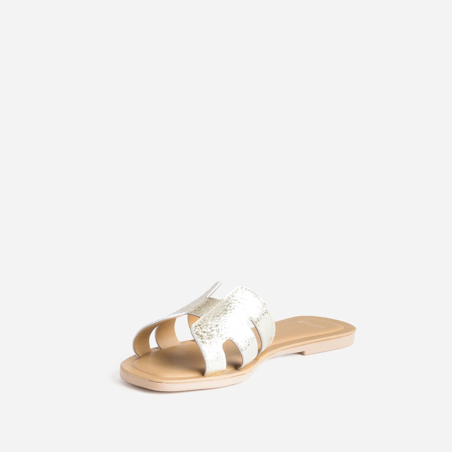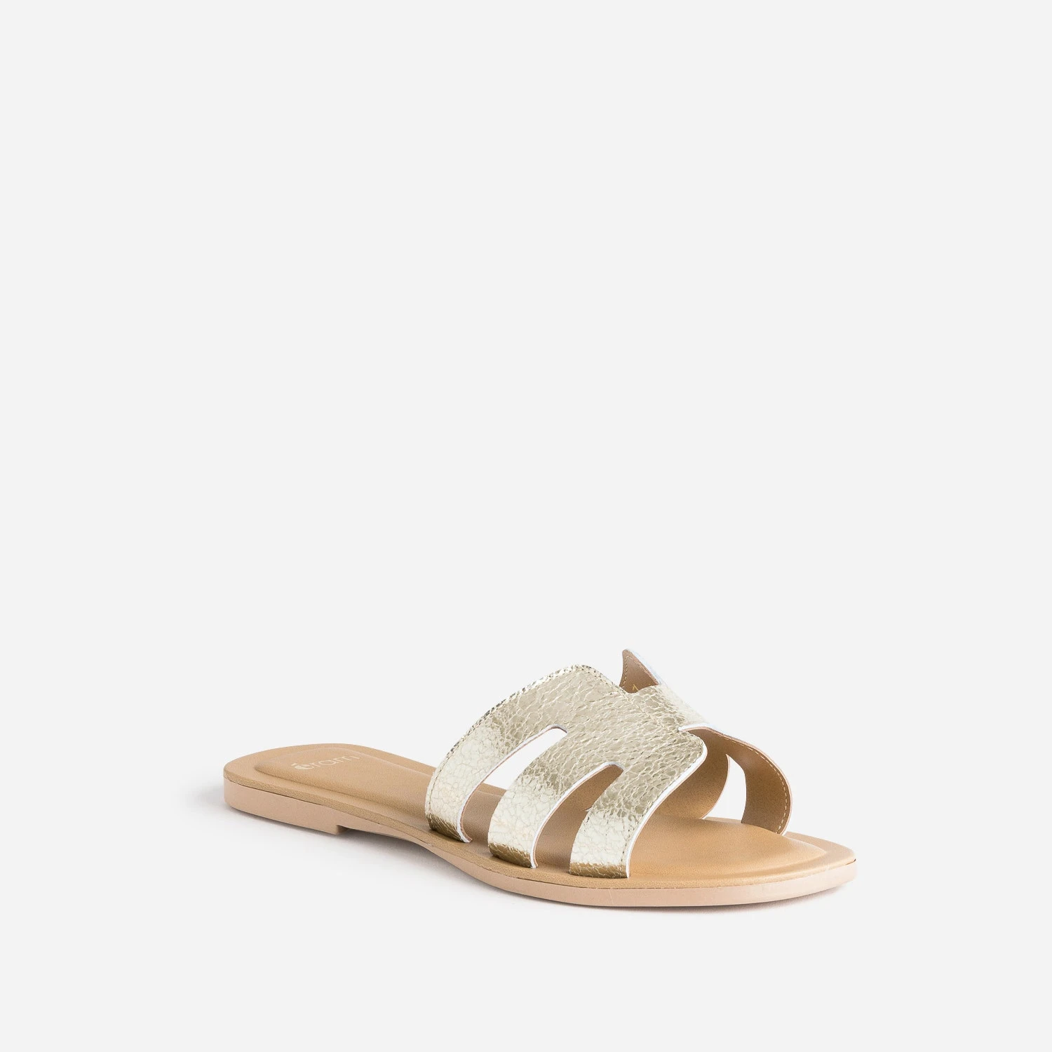 Avis aux fashionistas ! La mule est en passe de détrôner l’indémodable sandale d’été. En cuir grainé, elle présente une doublure et une semelle première en matière synthétique. Elle marque son style par une large bride rythmée de découpes étudiées et de surpiqûres en ton sur ton. Plate, elle se porte sans modération, avec toutes les tenues, qu’elles soient habillées ou plus décontractées. Son coloris or s’accorde avec toutes les teintes, sans exception.