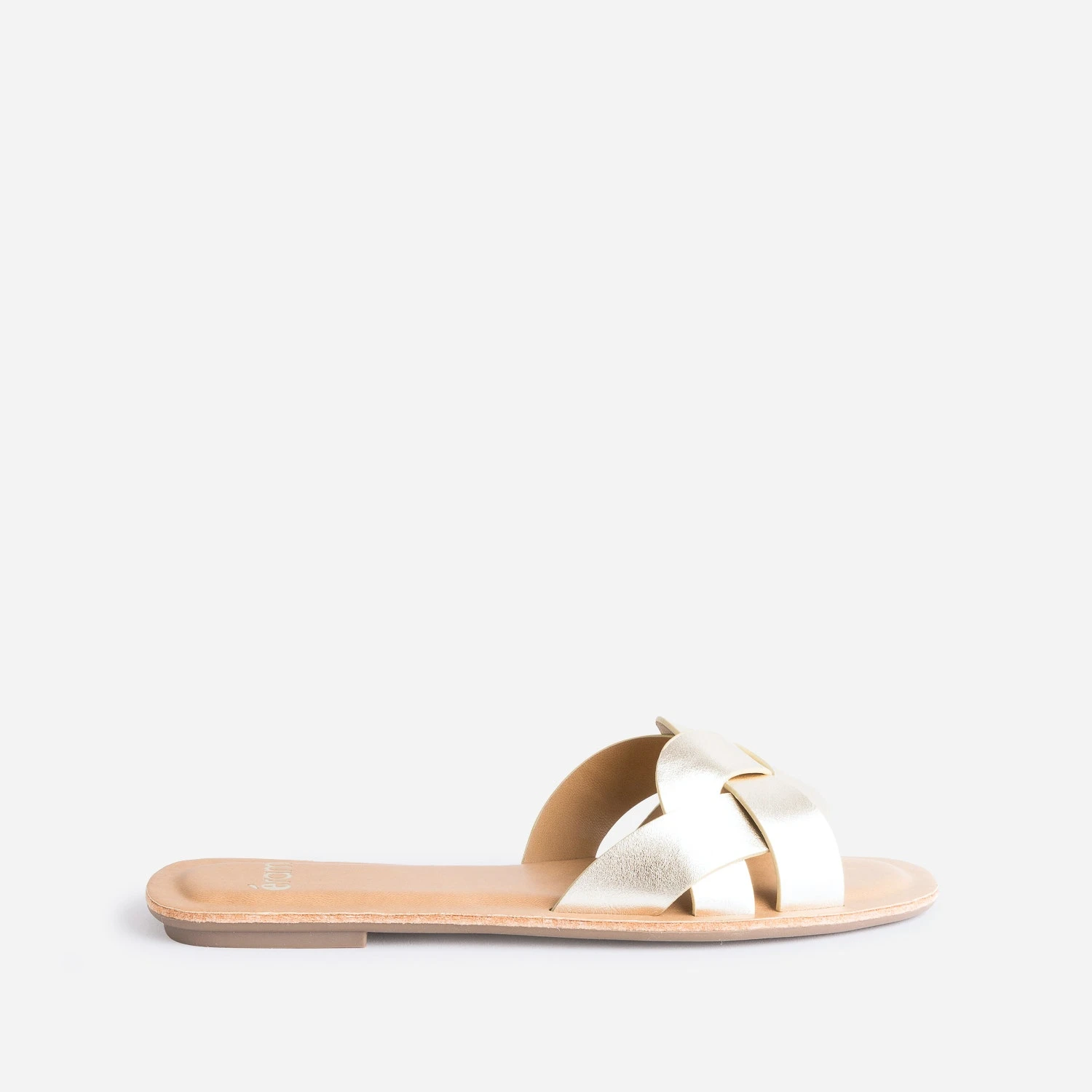 100% synthétique, la mule séduit de plus en plus d’adeptes. Plate, elle se démarque par un jeu d’entrelacs formant l’unique et large bride sur le dessus du pied. Or, elle s’autorise un effet métallisé très réussi. Un modèle idéal au quotidien, pour travailler comme pour sortir.