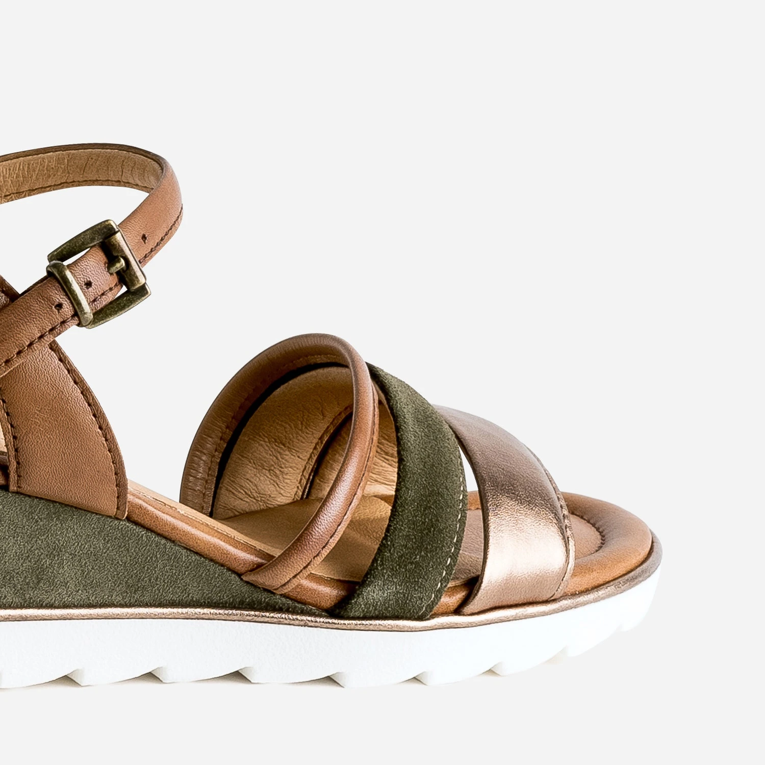 Sandale Compensée MARCO TOZZI Kaki En Cuir Velours