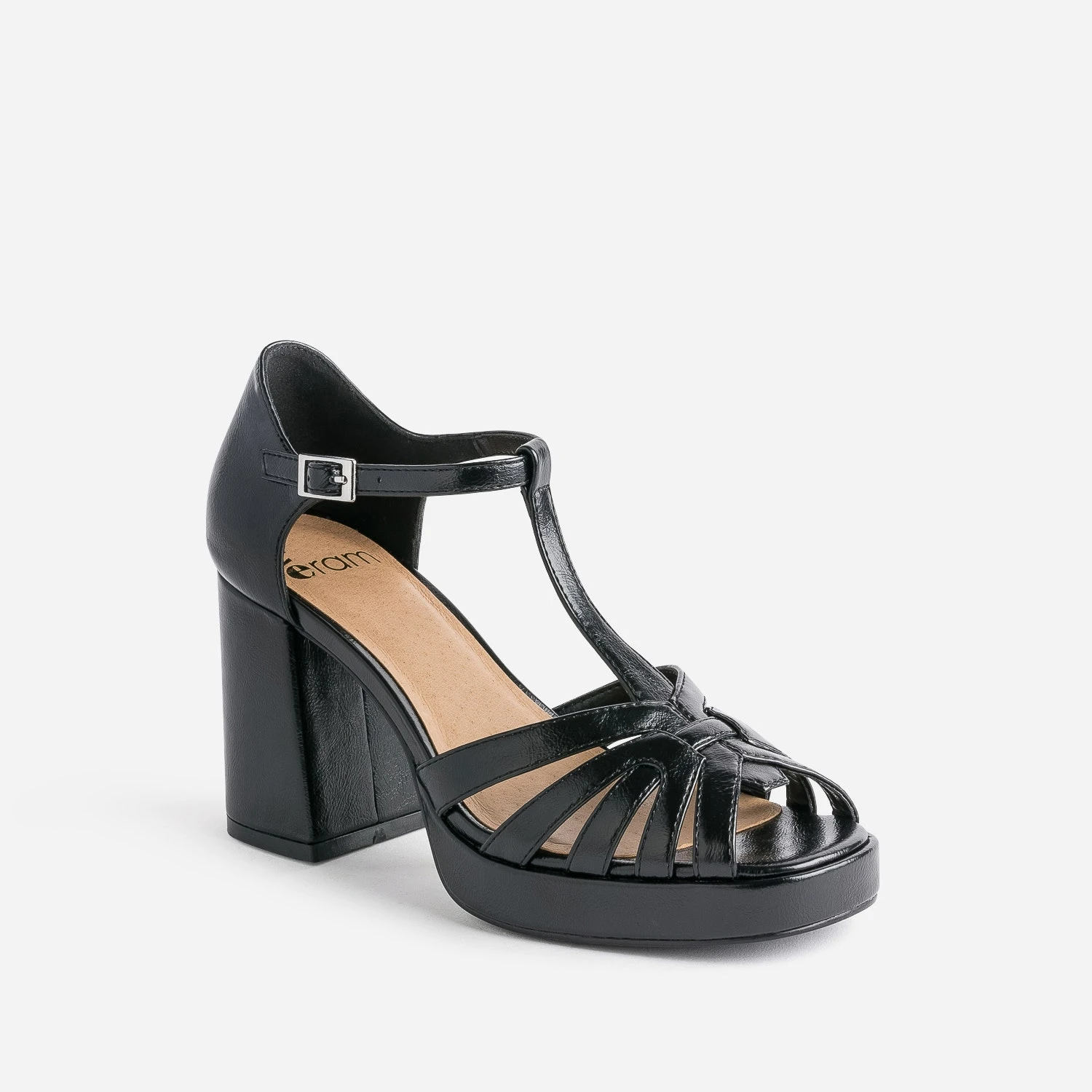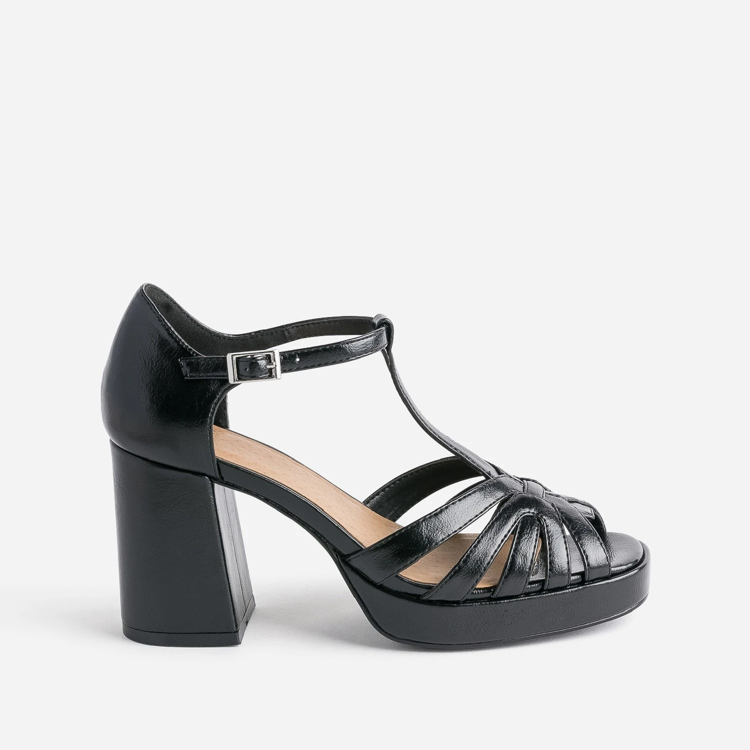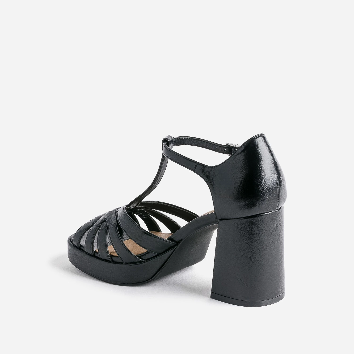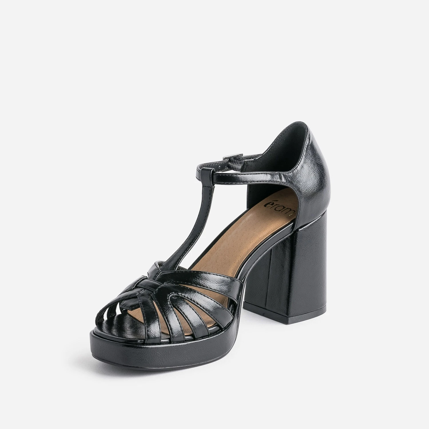 Esprit salomé par sa bride en T, esprit disco par son talon large et sa plateforme à l’avant, esprit rétro par ses brides entrelacées : 10/10 pour cette sandale noire, qui prône la féminité. En matière synthétique noire, elle présente une finition légèrement glacée. Allégez le look pour équilibrer les volumes : préférez les fines bretelles ou le décolleté en V, le pantalon large cropped ou la jupe midi.