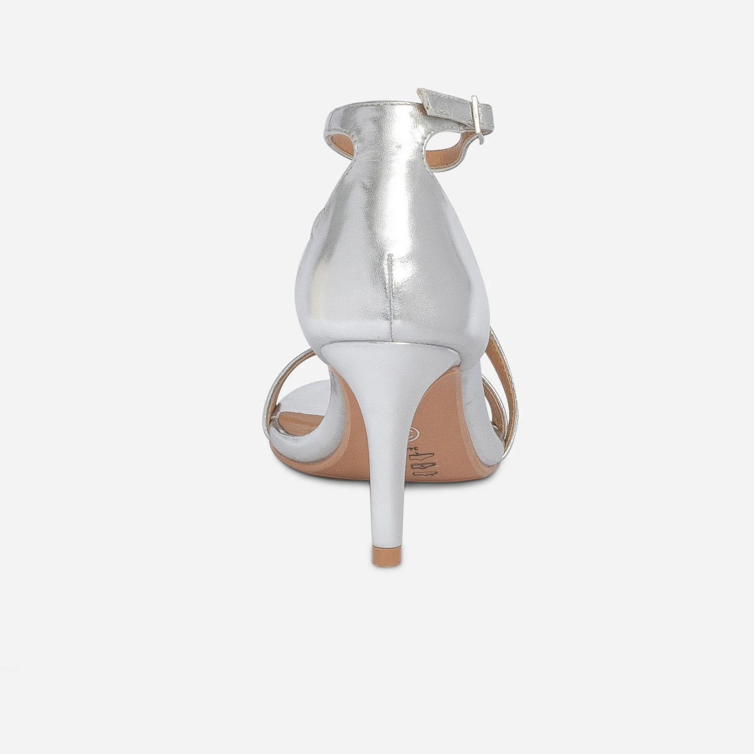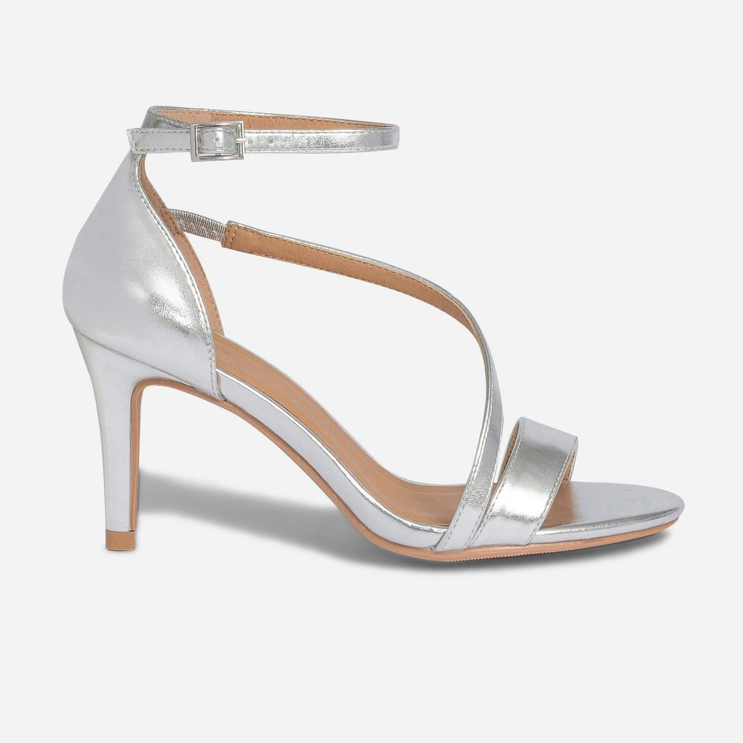 Le premier mot qui vient à l’esprit quand on découvre cette sandale, c’est Wahou ! Une matière synthétique lisse, mise en valeur par un coloris métallisé argent, un talon fin de 8,5 cm, qui allonge la silhouette, et des fines brides, qui épousent le pied avec délicatesse. Un modèle ultra féminin pensé pour faire le show. A vous robe-fourreau, tailleur inspiration smoking ou combinaison-pantalon rehaussée de dentelle, digne des plus belles cérémonies.