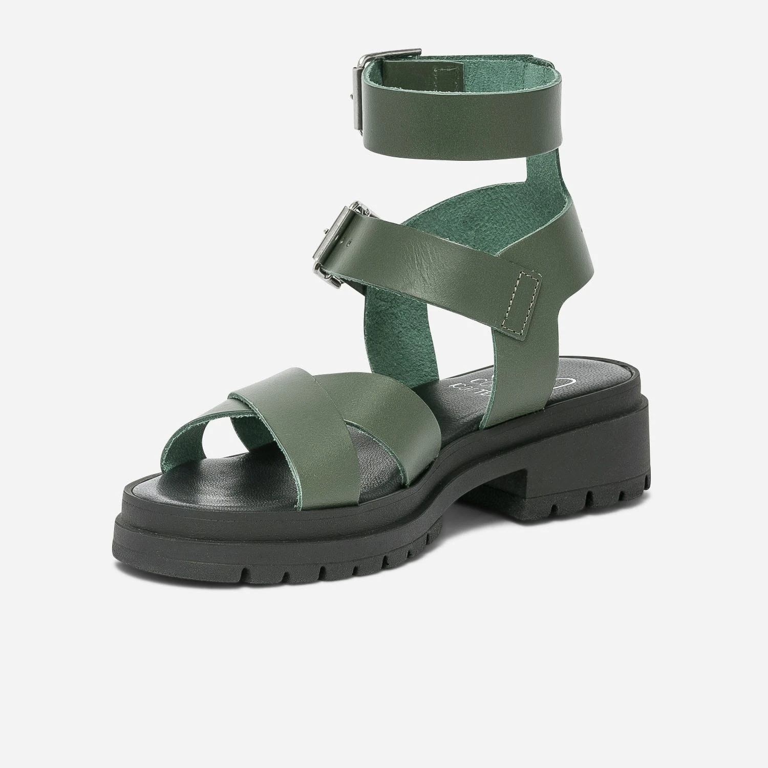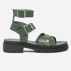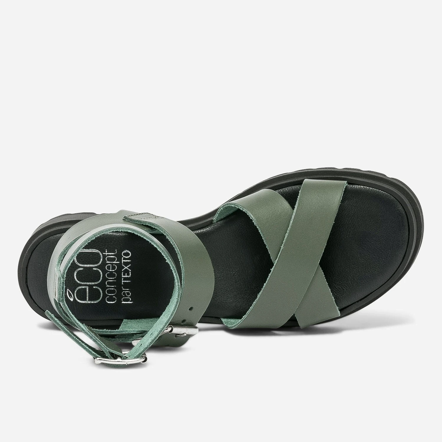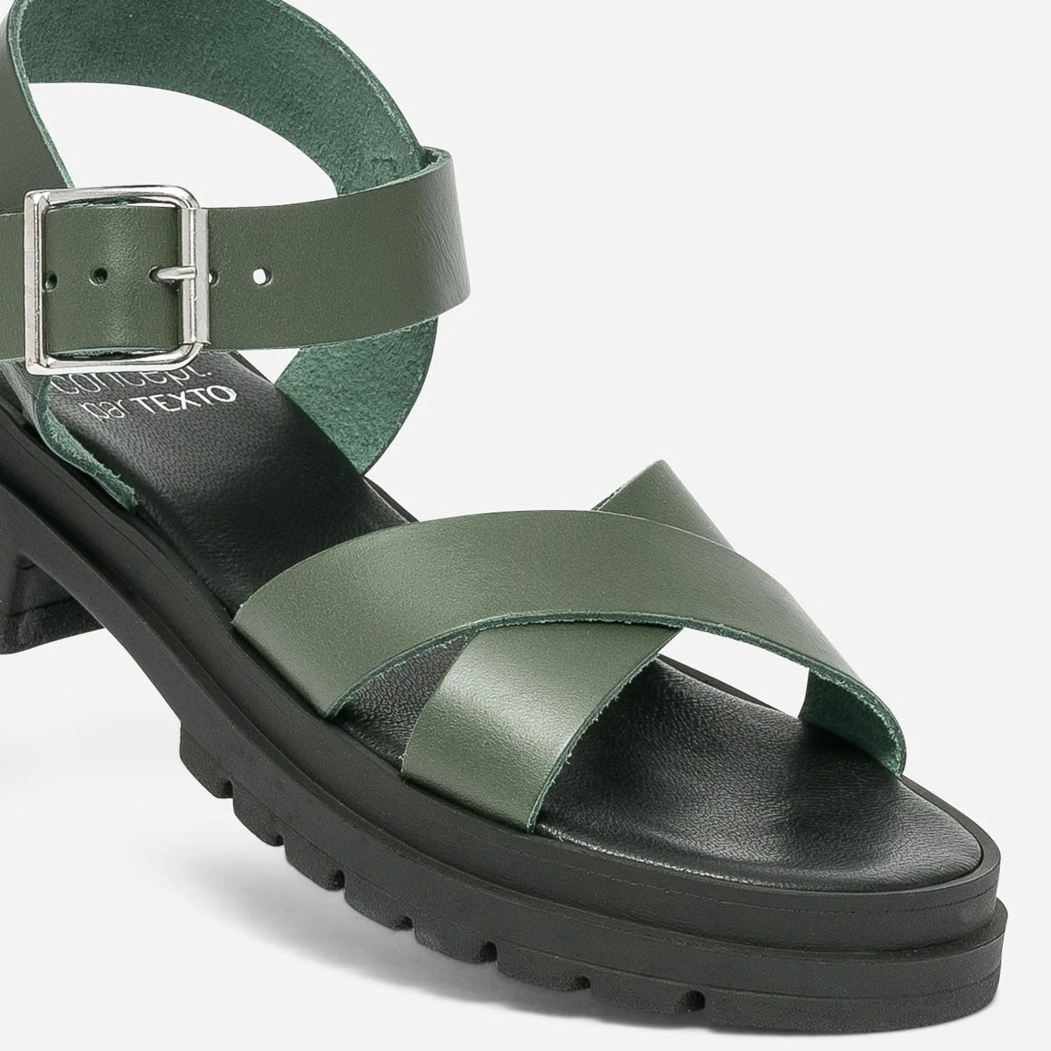 Sandale TEXTO Kaki En Cuir éco-conçu à Semelle Crantée