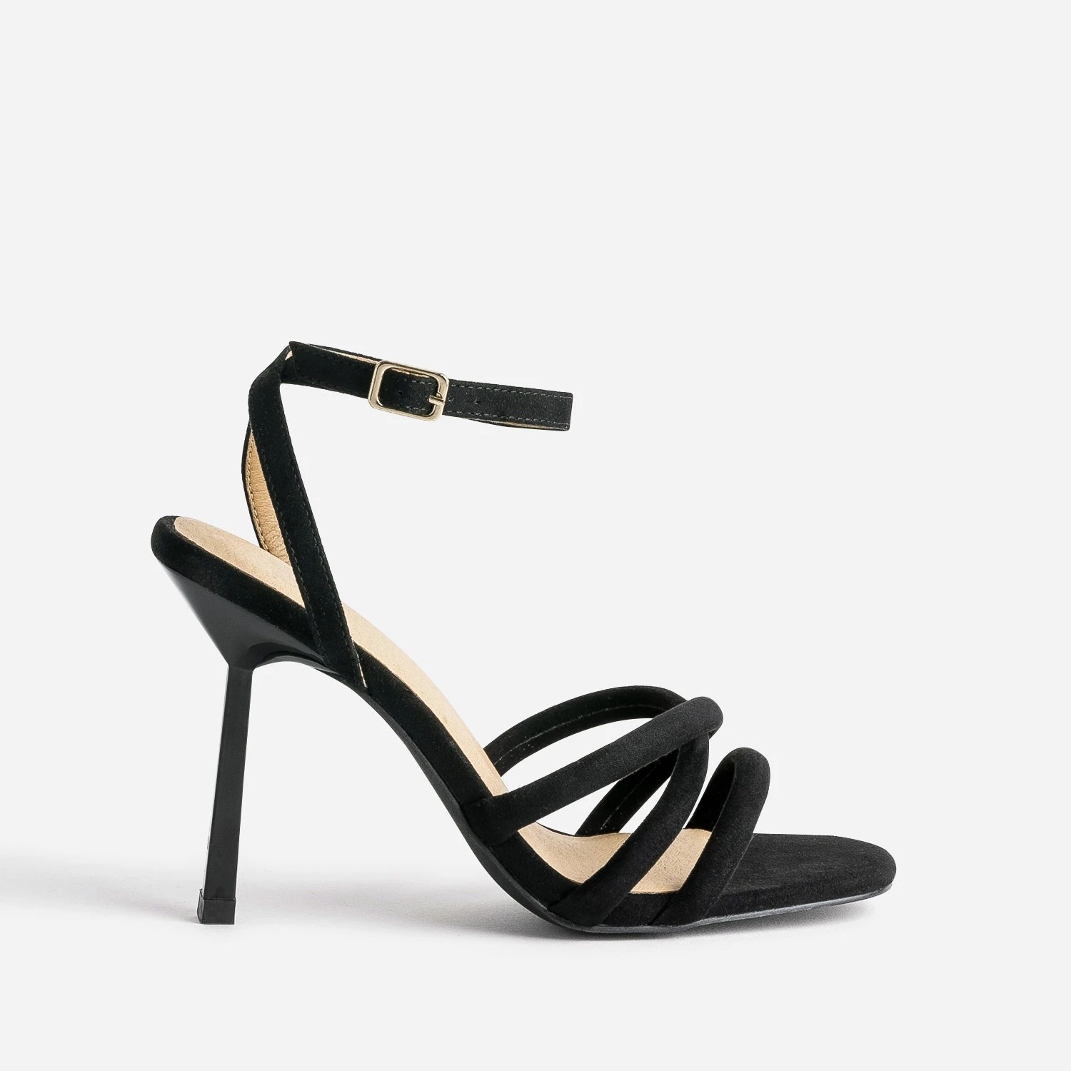 Les fans de talons ne vont pas être déçues ! Cette sandale femme fait clairement le show : textile noir, talon fin et verni de 10 cm, brides arrondies sur bout carré. Réservez-la avec une tenue waouh, comme une robe bustier, ou décalez-la avec une robe portefeuille à imprimé fleurs d’été.