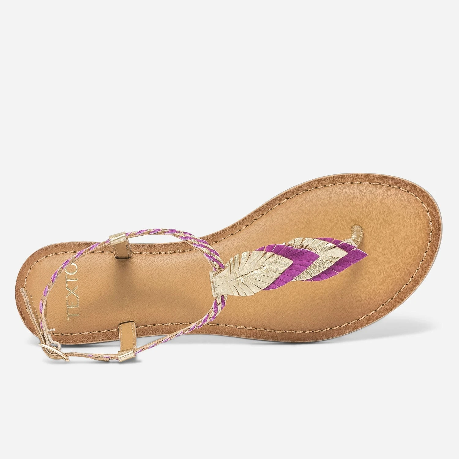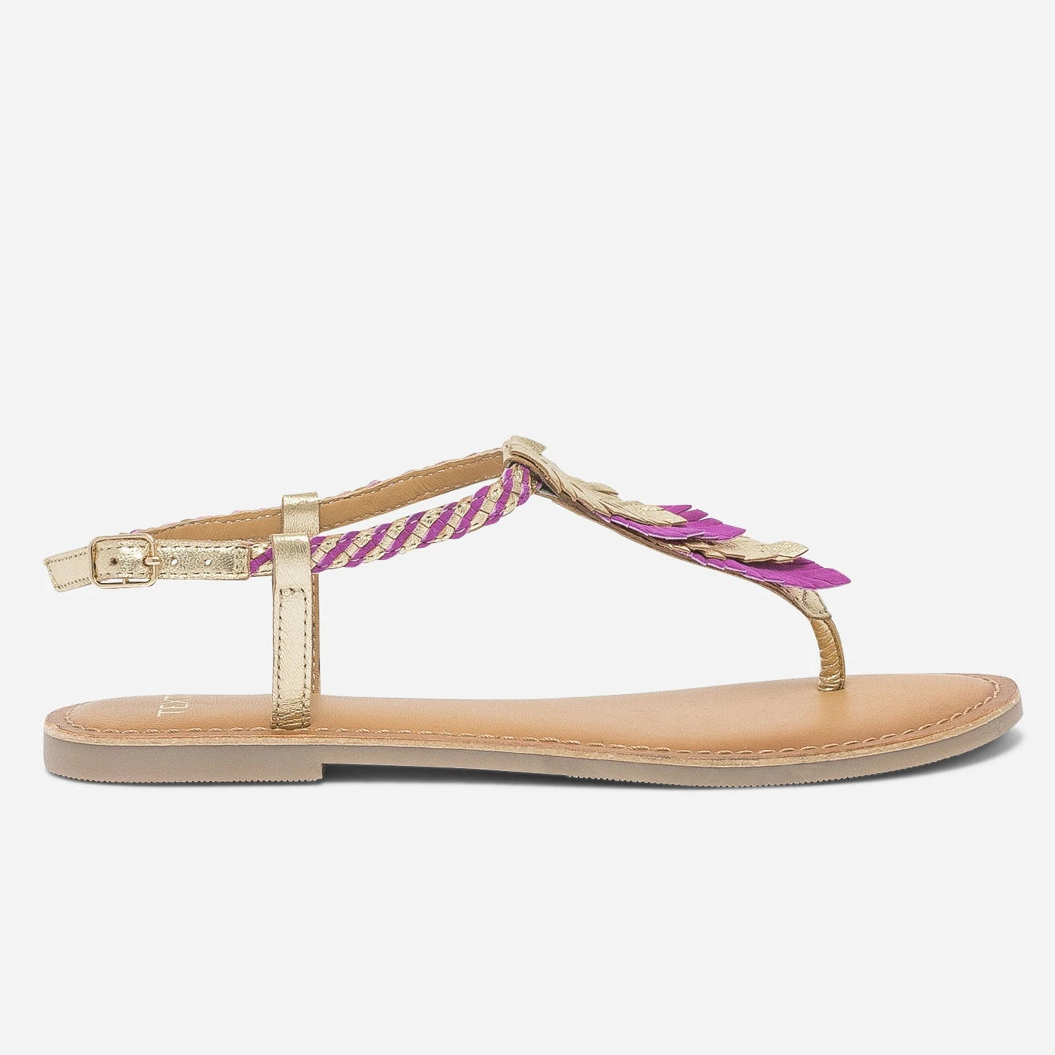 Sandale-tong Violine Et Doré En Cuir à Plumes