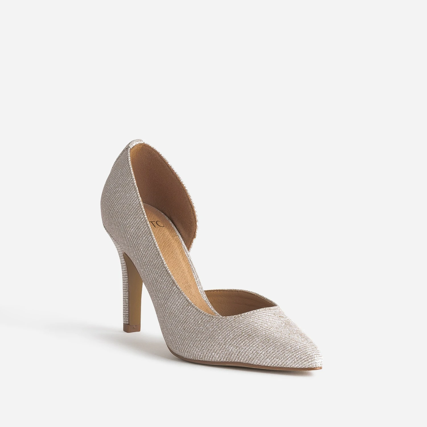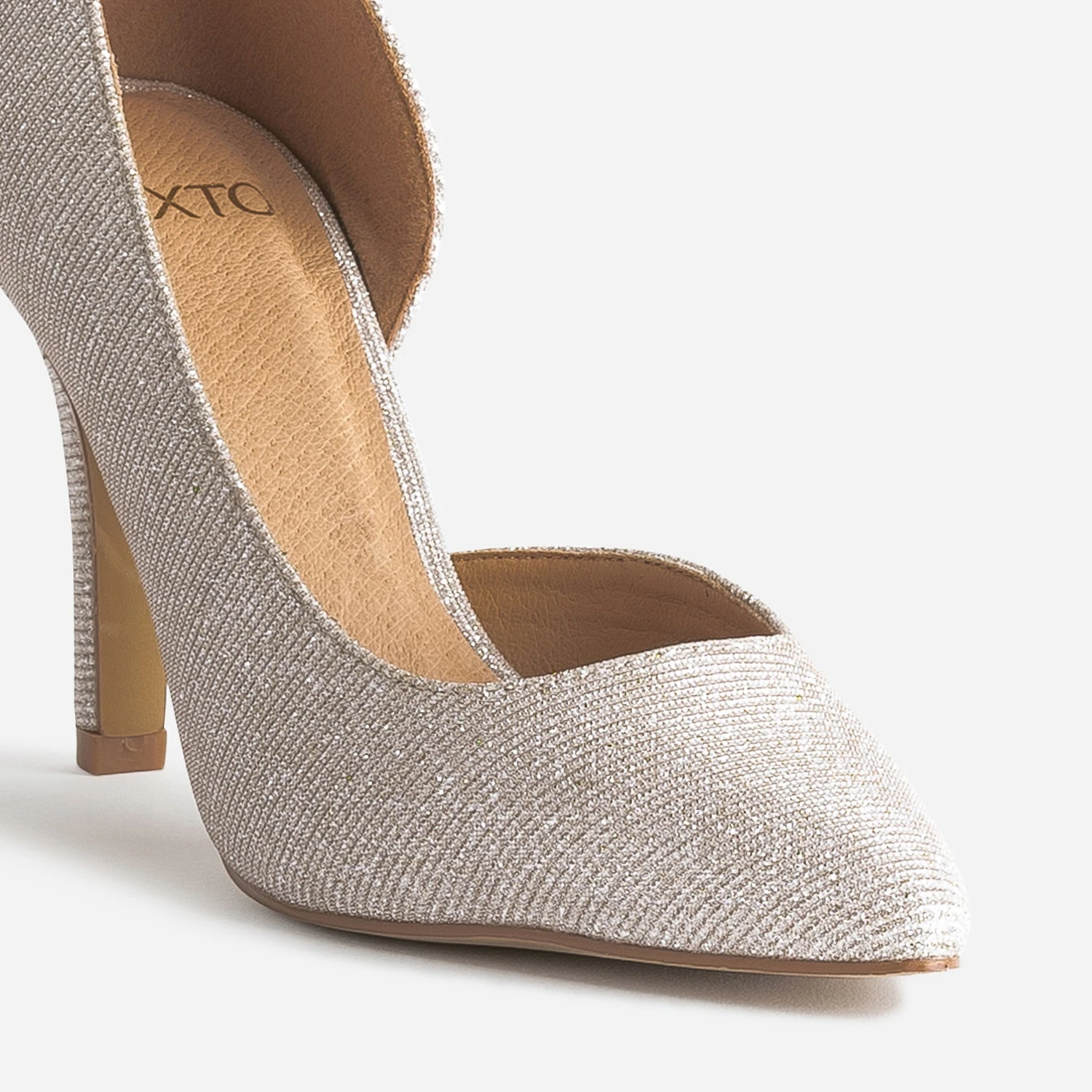 Cet escarpin femme, c’est le must-have qui traverse les saisons sans se démoder. Affinée par un bout pointu, sa ligne présente une découpe sur l’intérieur du pied, dévoilant une jolie cambrure travaillée. En matière synthétique beige clair, il est rythmé d’un effet pailleté, jusqu’à la pointe de son talon. Prenez de la hauteur (près de 10 cm !) et revisitez la tendance glam’ chic avec une robe crayon ou un look futuriste !