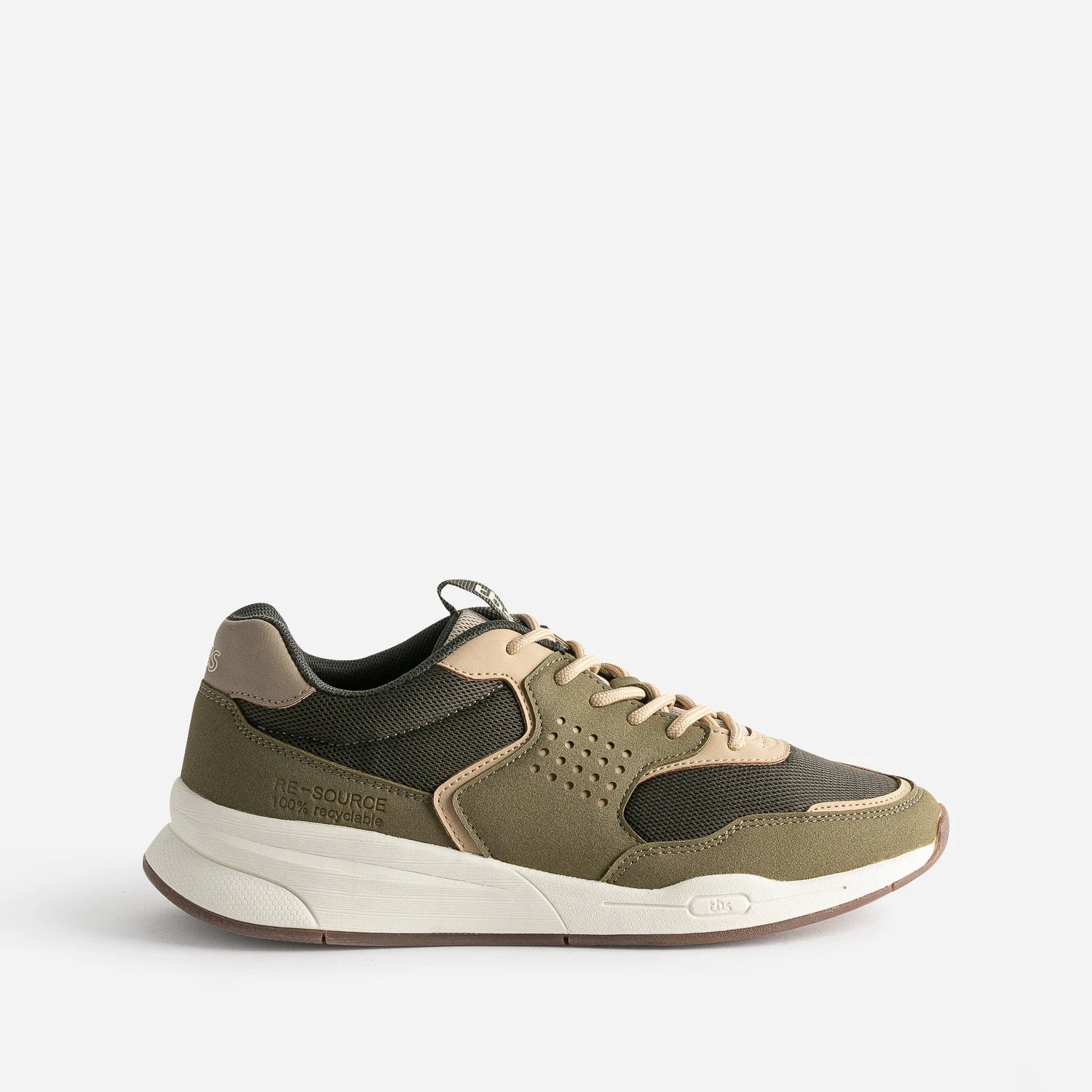 Soucieux de répondre aux problématiques de recyclage, TBS a imaginé une basket engagée & responsable, à chaque étape de sa conception : RESOURCE, la première chaussure 100% recyclable. Les nuances de verts, kaki, vert foncé et beige, s’harmonisent sur cette tennis pour femme, par un jeu de matières vegan judicieux. Elle se ferme par un lacet contrasté.