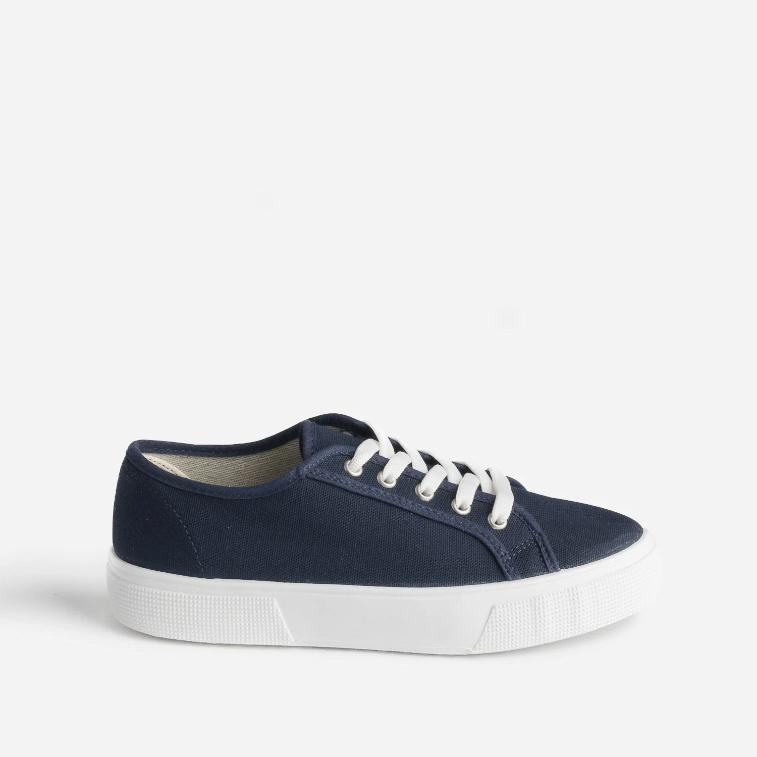 Classique parmi les classiques, la tennis en toile est une piĂšce phare du shoesing d’entre saison. En 100% coton bleu marine et non doublĂ©e, elle est montĂ©e sur une semelle en matiĂšre synthĂ©tique, lĂ©gĂšrement plateforme. Elle se ferme par un lacet plat ton sur ton. Un modĂšle trĂšs facile Ă porter, avec une mariniĂšre et un pantalon bleu marine Ă pont, pour un look tendance et dĂ©contractĂ©.