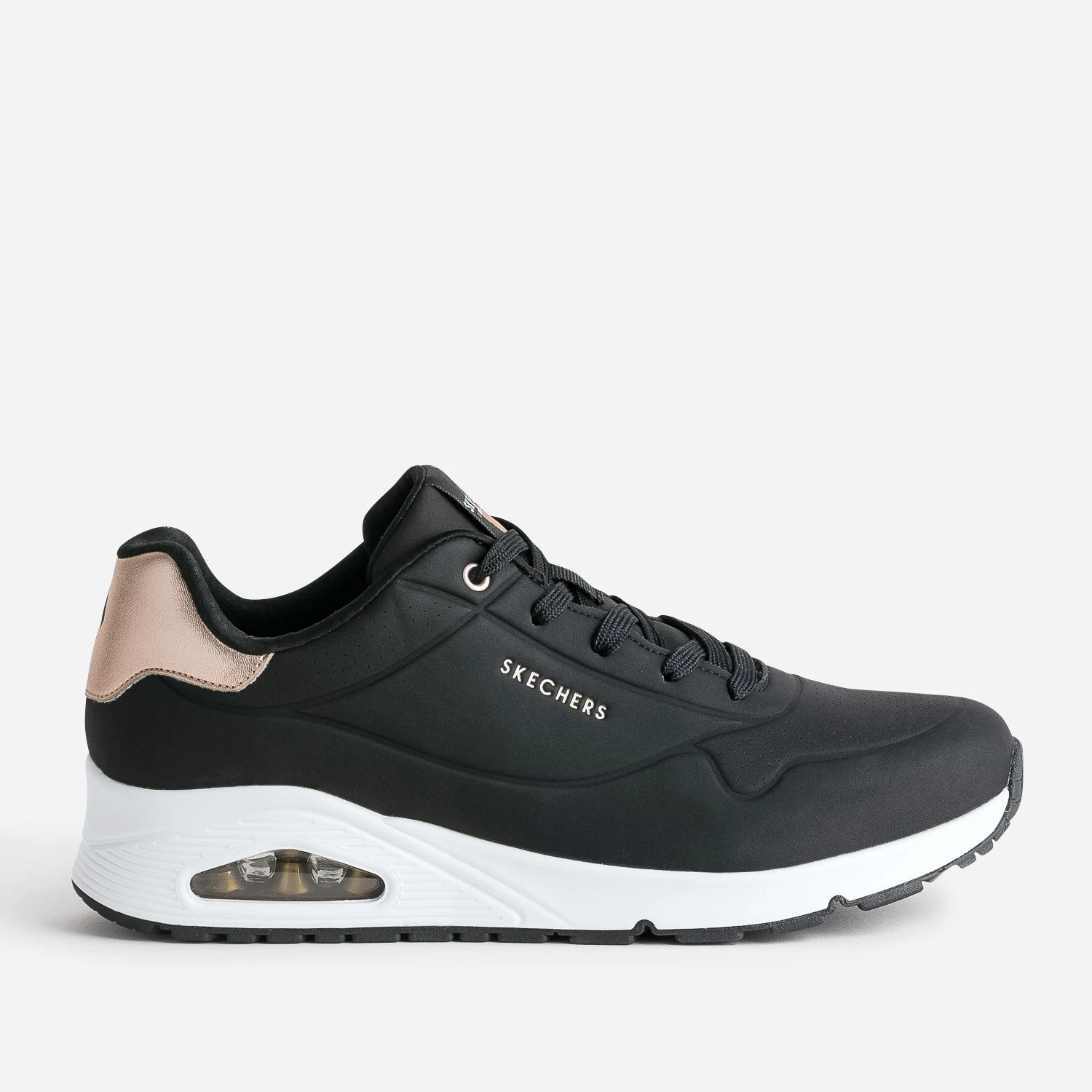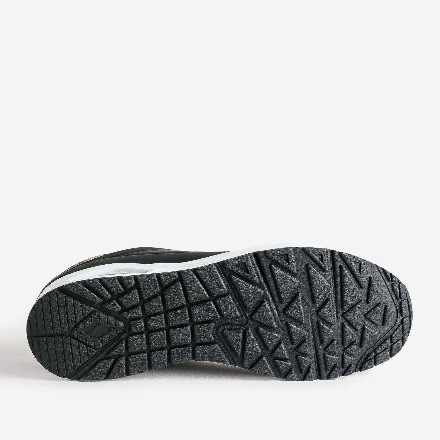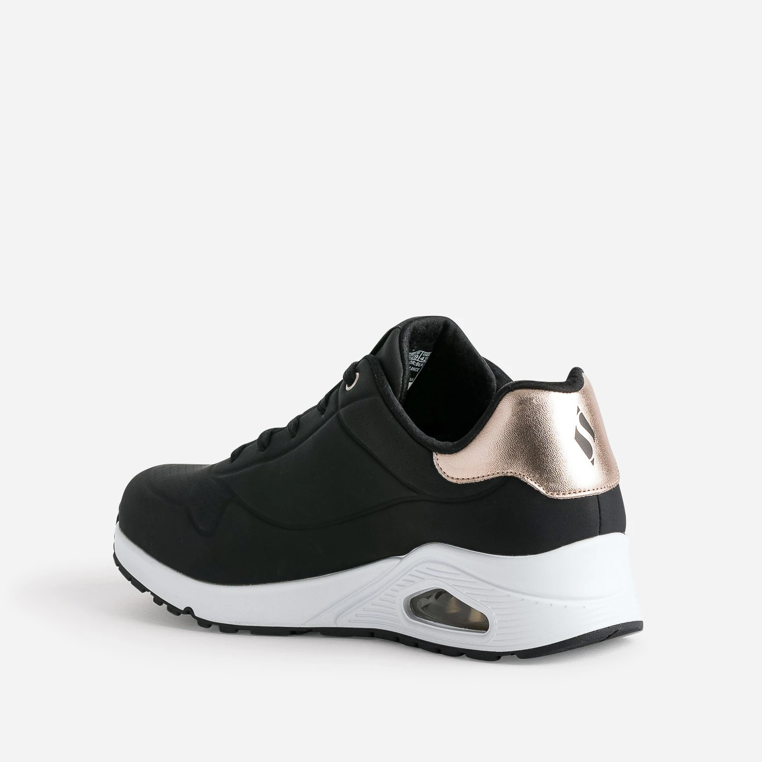 Le modèle Uno pour femme concilie deux grandes tendances, celle des sneakers et celle du métallisé. Mettez une touche de fun dans vos looks avec cette tennis noire, rythmée d’un contrefort léopard. La semelle intérieure se démarque par un système Air-Cooled à mémoire de forme, pour un confort incomparable et une respirabilité incomparable. Une tennis pour faire le show, en jean mom gris et sweat pastel.