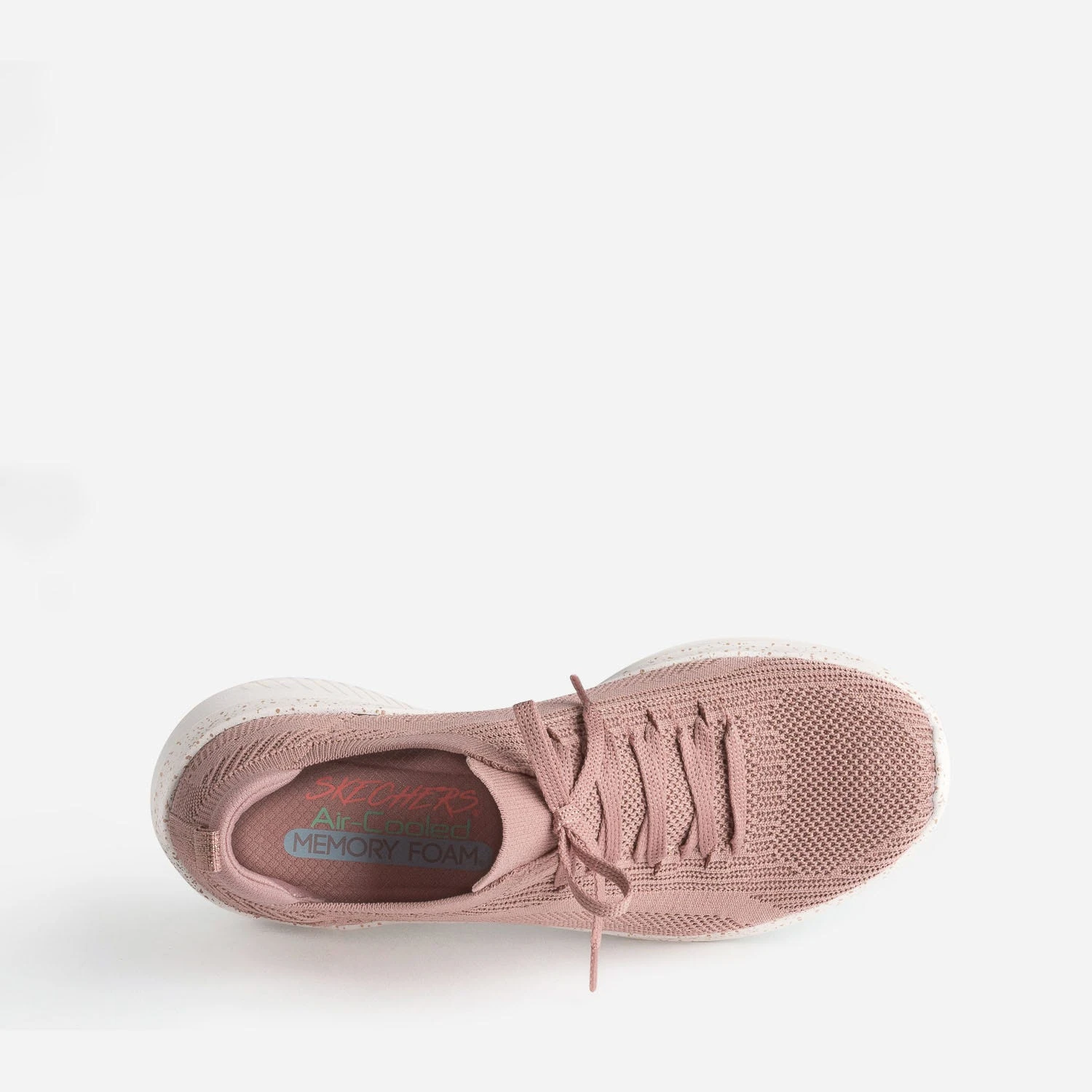 Cette tennis femme surprend par sa matière tricotée effet mesh extensible et respirante, semblable à une chaussette, dotée de la technologie Stretch Fit. De couleur vieux rose, délicatement rythmée de touches pailletées rose cuivré, elle présente un lacet fixe décoratif sur le dessus du pied, pour s’enfiler en un clin d’œil ! Elle est montée sur une semelle légèrement compensée avec taches métallisées et jeux de reliefs.