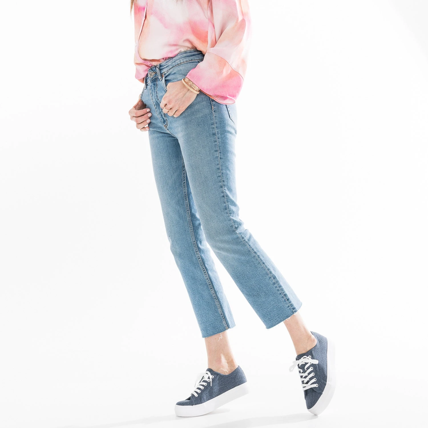 Ce bleu là, il est parfait. Inspiré du denim, il assure des looks décontractés. La tennis femme associe toile et semelle épaisse blanche, pour s’inscrire dans la tendance du moment. Un modèle à privilégier à l’entre saison, avec un tee-shirt, un jean cropped et une veste en jean.