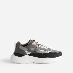 Empruntez la tennis, pour faire la transition entre deux saisons. Noir, gris, argenté, bronze : une harmonie de tons neutres, facile au quotidien. Matière synthétique lisse, embossée ou métallisée, mesh : une association réussie. Avec un costume noir ou beige, avec un tee-shirt noir et un jean blanc, la tennis femme finalise les looks d’une touche casual chic.