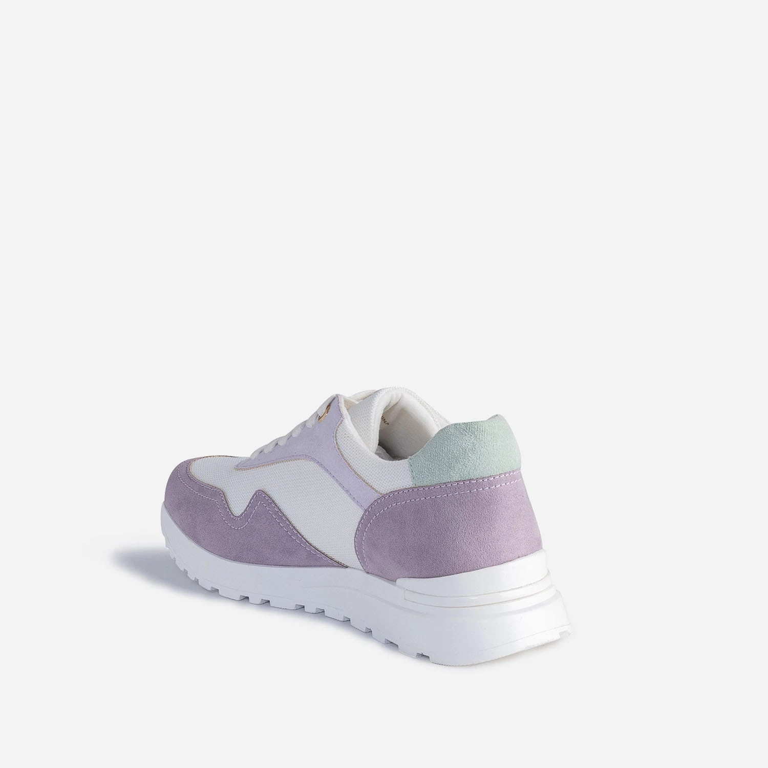 Passion couleurs pastel. Passion sneakers. Cette tennis femme concilie tout ce dont vous rêviez. Mesh blanc, matière synthétique parme et vert sauge, elle s’invite du bon pied dans le printemps, et tout au long de l’été. Imaginez-la avec un costume pantalon violet, ou bien avec un tee-shirt blanc et une jupe longue plissée vert amande.