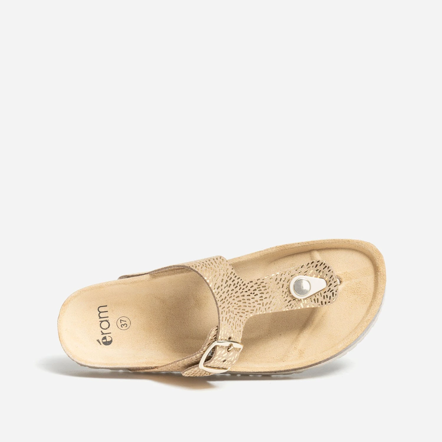 Pourquoi on aime cette tong ? Pour sa semelle anatomique, spécifiquement étudiée pour soulager le pied et offrir un confort optimal. Pour sa confection, en cuir velours beige foncé, rythmé par des détails dorés, sur les brides et en croûte de cuir marron sur la semelle. Elle signe un style casual largement plébiscité par les modeuses. L’essayer, c’est l’adopter !