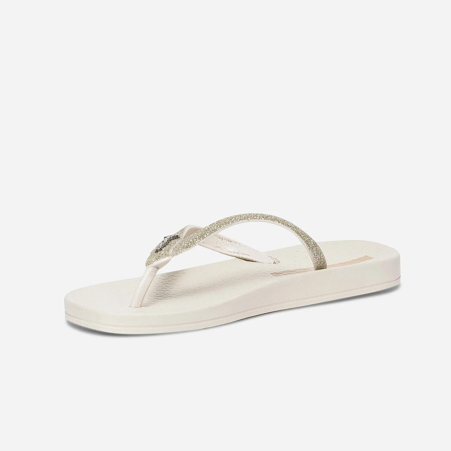 Cette tong pour femme se décline en coloris beige intemporel. Son atout ? Des brides pailletées dorées. Un modèle parfait pour un twist fun et chic, avec toutes les tenues d’été.