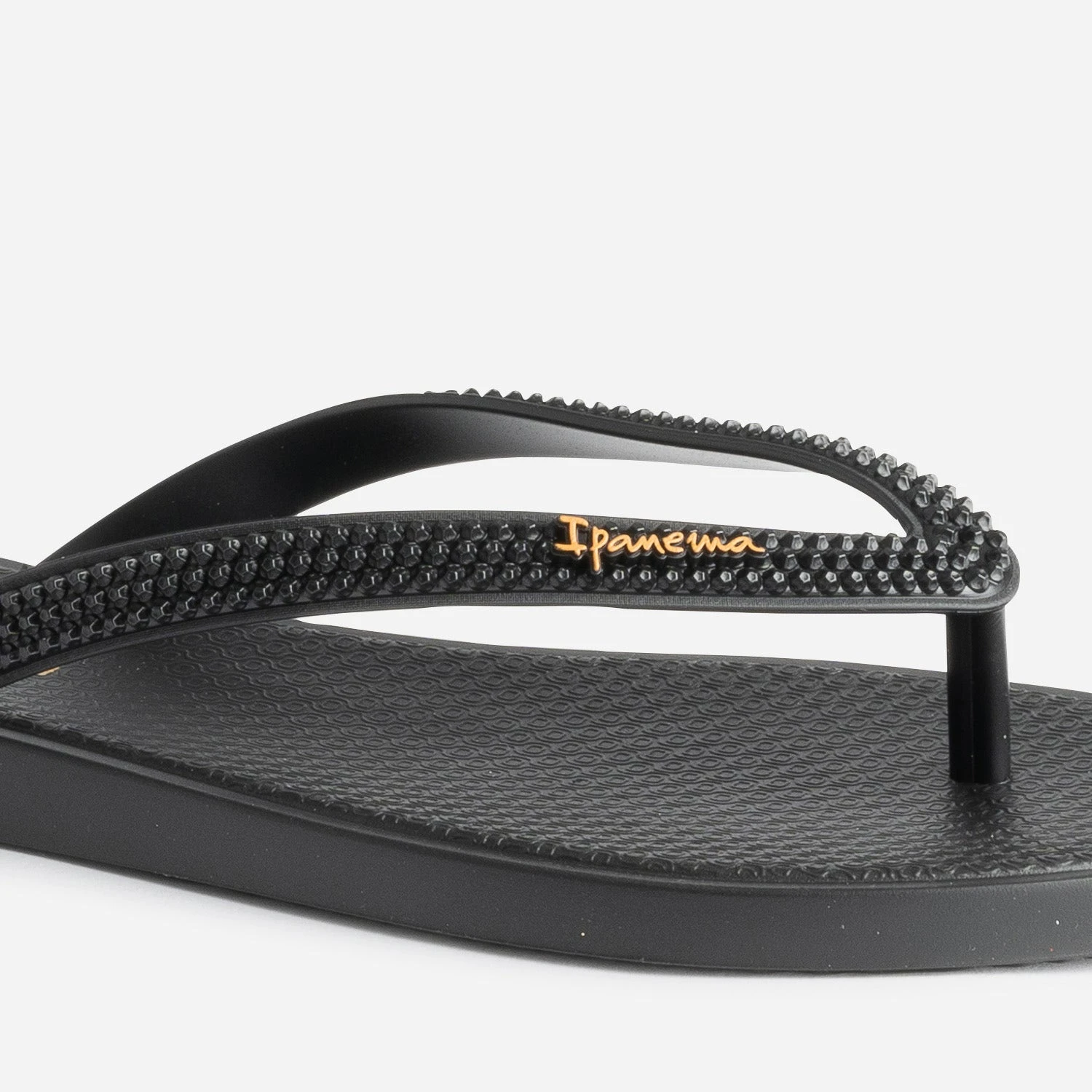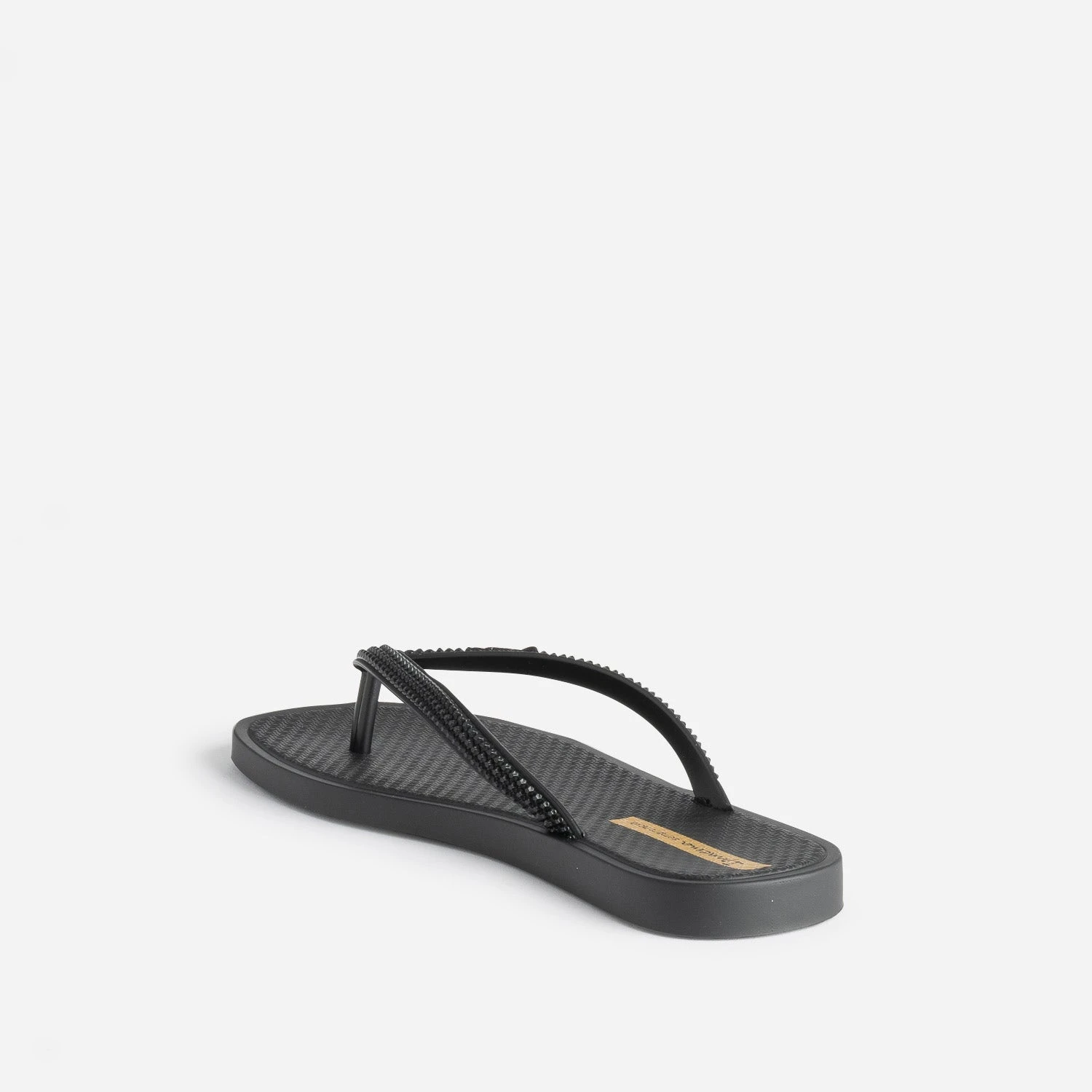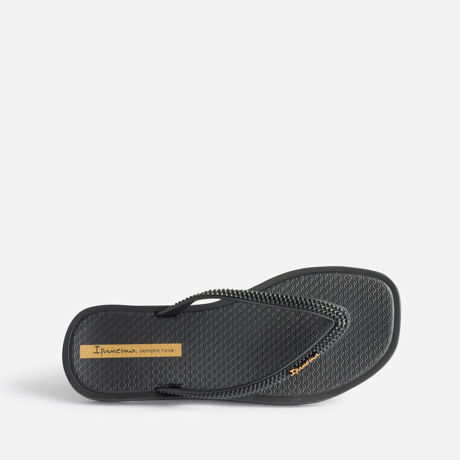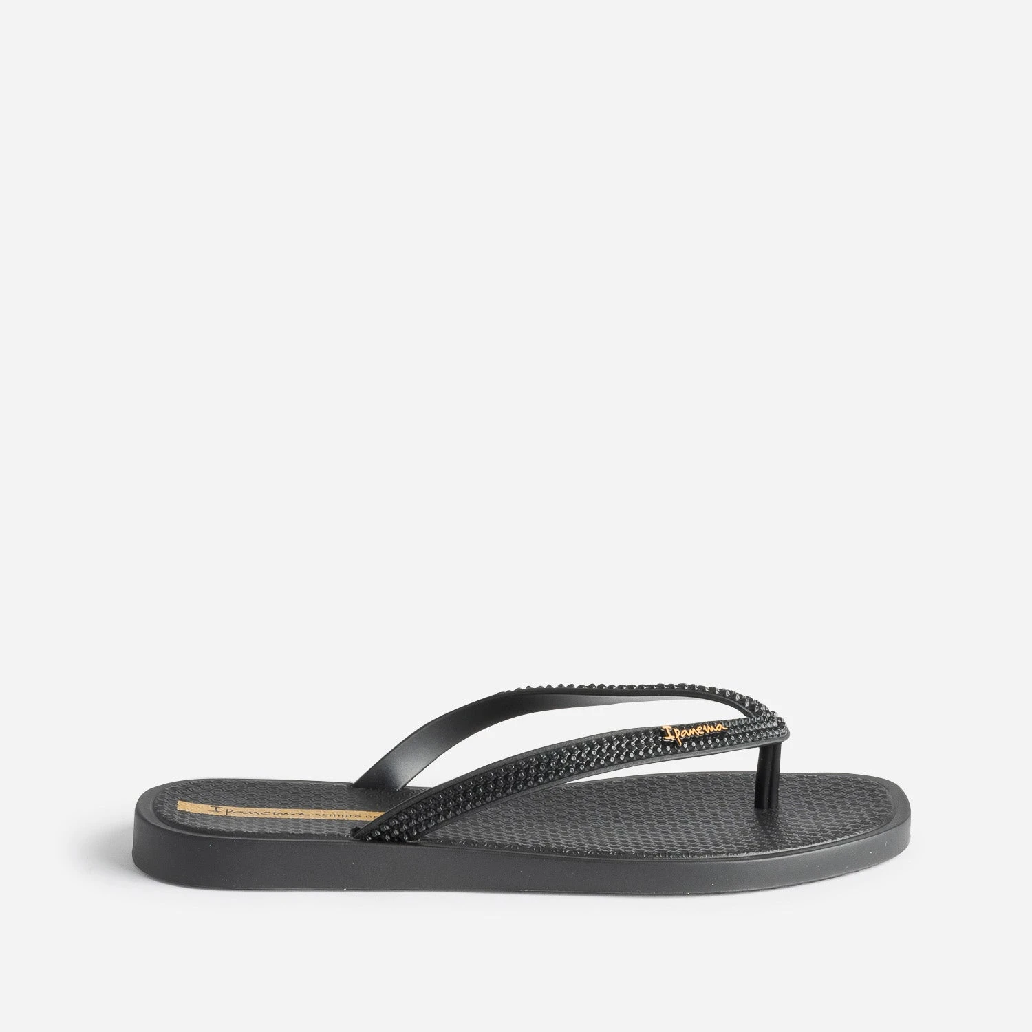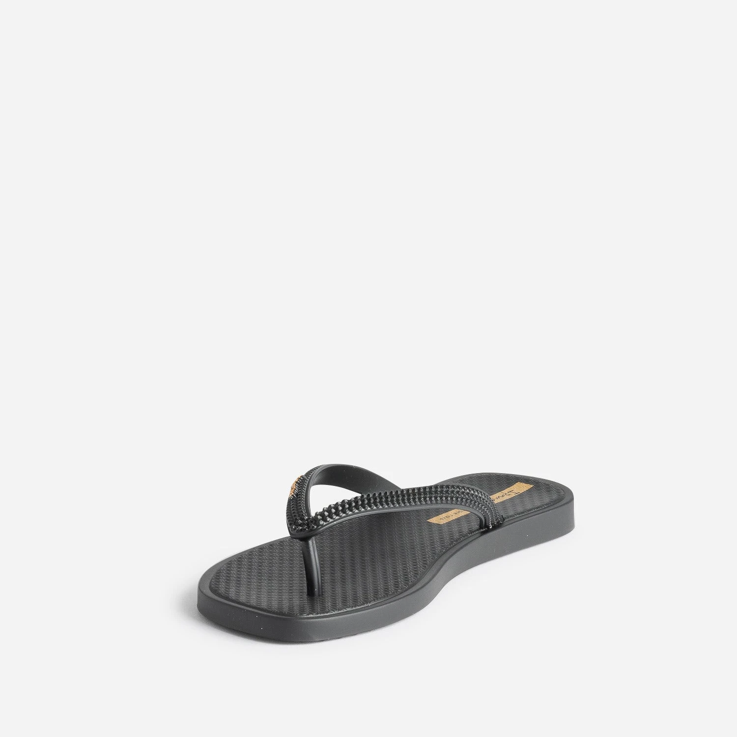 Bout carré, talon plat, coloris noir, cette tong pour femme mise sur la sobriété. Les brides entre-doigts se démarquent par un effet reliefé à picos, et la semelle, par un motif graphique, qui fait écho à celui du remblai de la plage d’Ipanema. Un modèle idéal pour un week-end ou des vacances à la plage, avec un look décontracté.